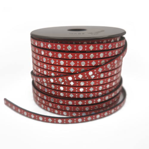 Piele naturala prelucrata in EU, model obtinut prin transfer de culoare arintiu AB pe baza culoare rosu.